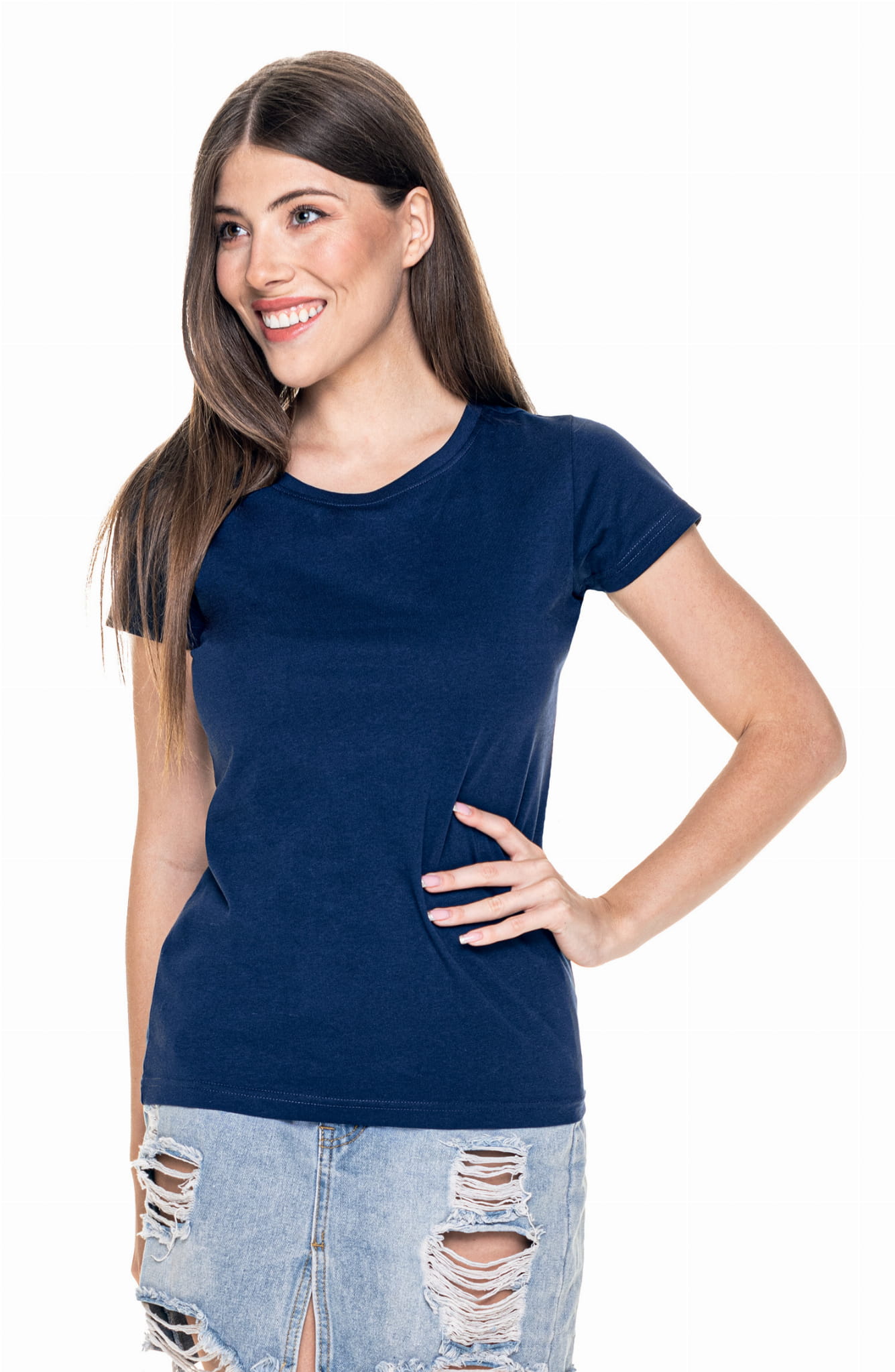 - klasyczny t-shirt damski z krótkim rękawem wykonany z